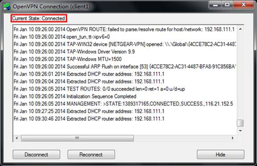 从上图中也可以看到,VPN连接已经成功。